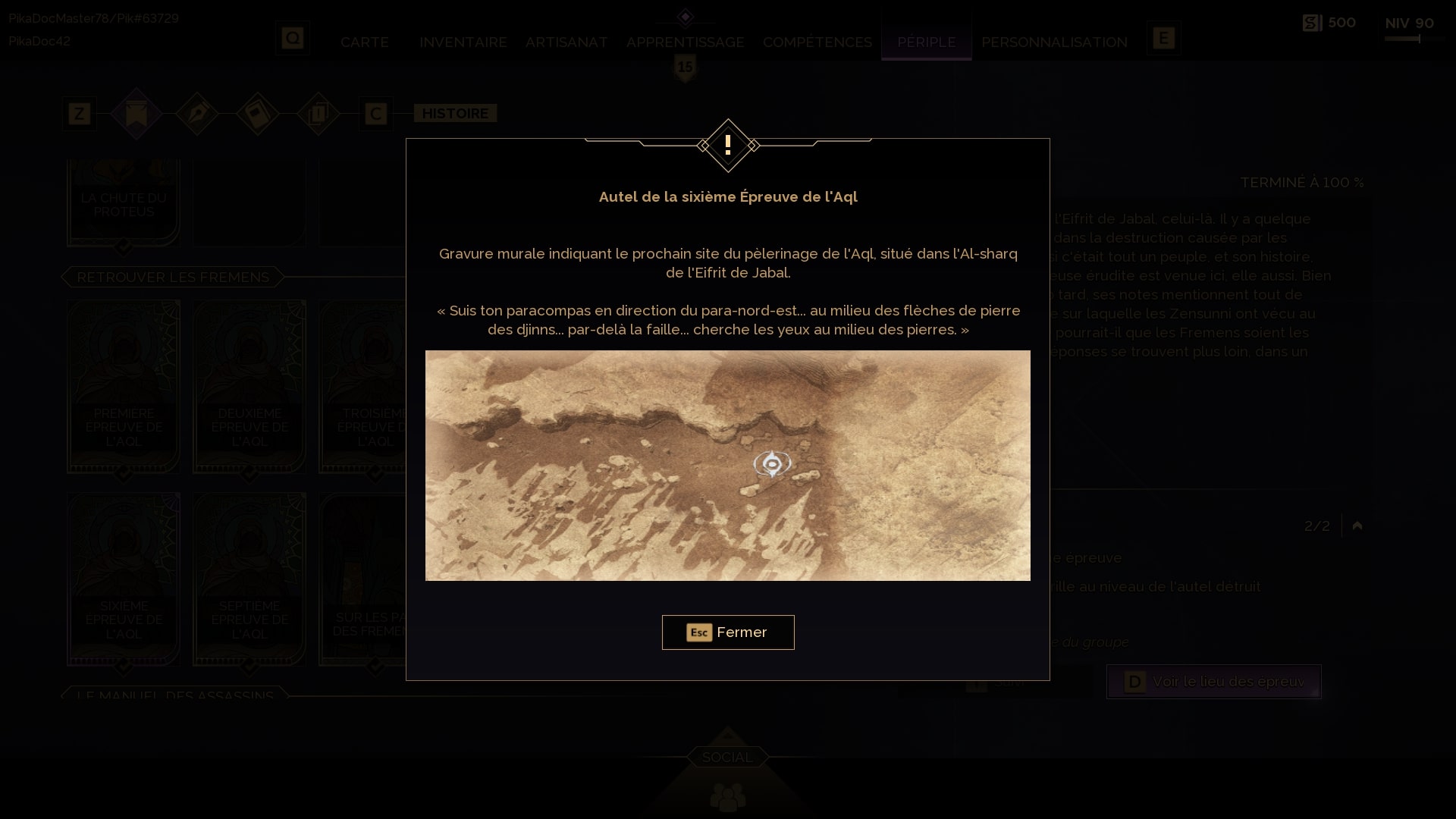 La Sixième Epreuve de l’AQL se trouve dans la région de l’Al-sharq de l’Eifrit de Jabal, tout au nord-est du monde ouvert. Pour la localiser, il nous suffit d’entrer dans la Caverne de l’Œil du Diable.