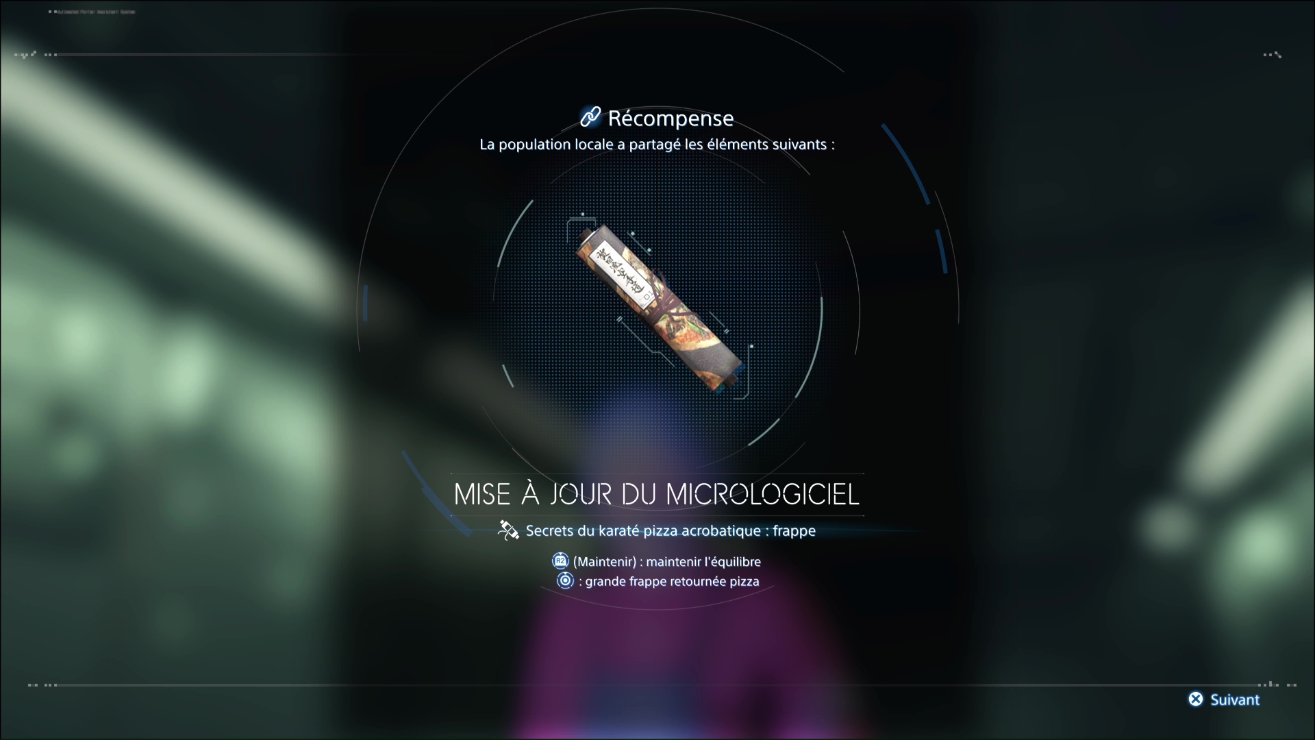 Savourez la cinématique aussi épique que décalée, après quoi s’officialise la véritable ouverture de la pizzeria Pizza Atami. Le Pizzaiolo vous expliquera alors qu’un imposteur a pris sa place et que désormais il est prêt à travailler comme avant. Vous allez ensuite recevoir plusieurs récompenses.