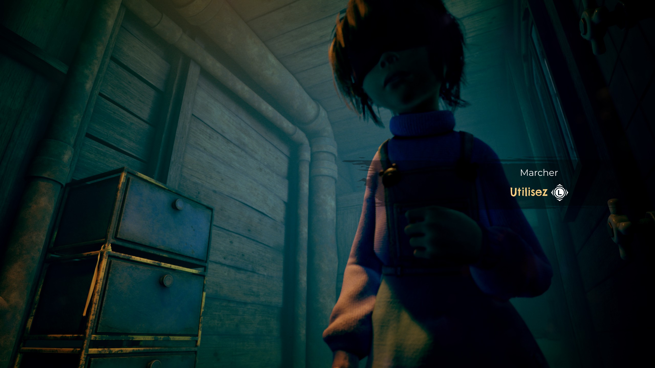 Dans un second temps, des énigmes seront à résoudre. De manière générale, des coussins seront parfois là pour permettre à Sophie de poser sa peluche en pressant une seule touche. C’est à partir de là que vous prenez précisément le contrôle de l’héroïne à la troisième personne. Cette dernière pourra évidemment escalader quelques plateformes, mais aussi activer quelques mécanismes, voire pousser des objets quand il le faut. Le tout, pour permettre conjointement à elle et son ourson une progression en parfaite harmonie.