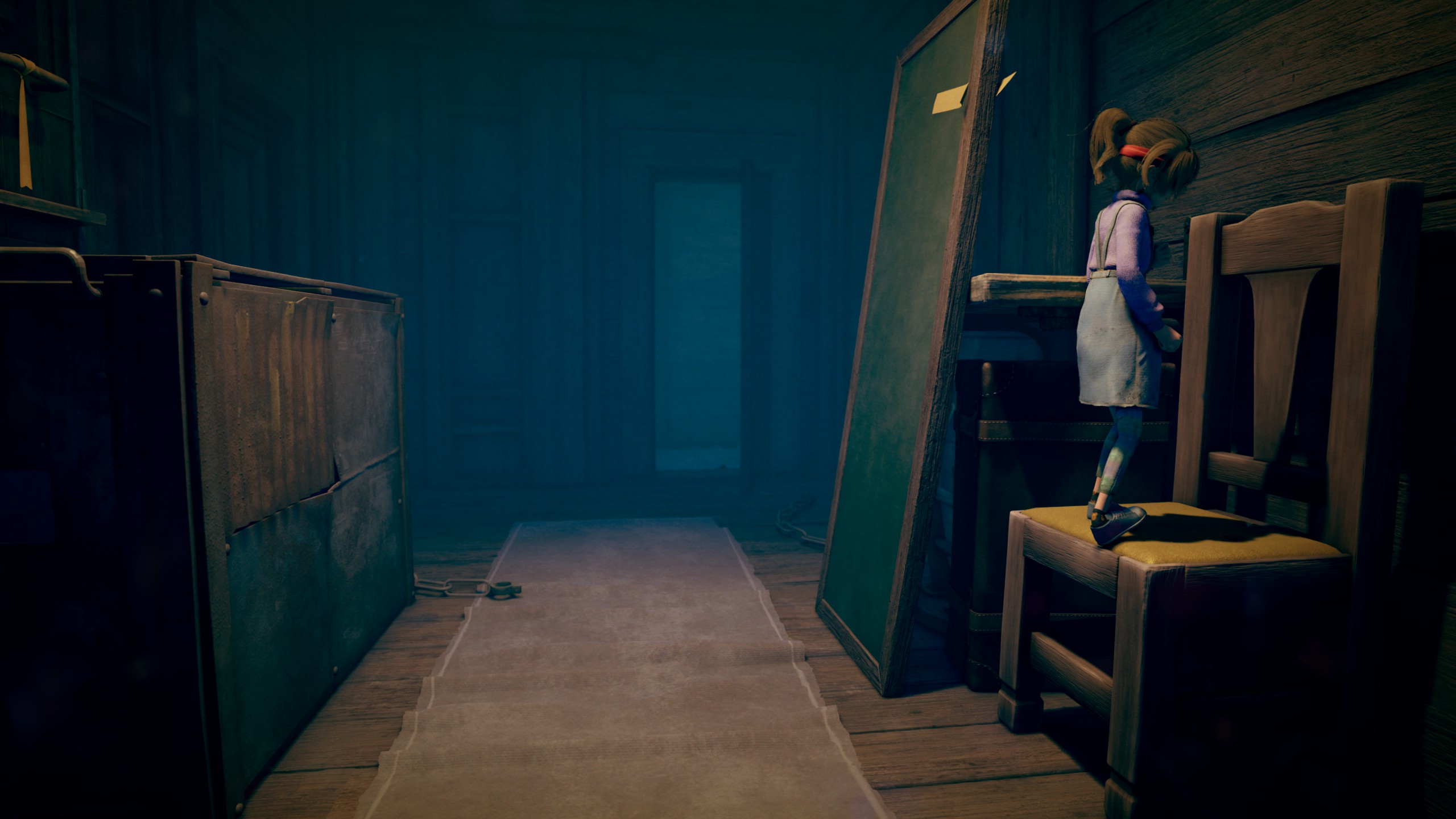 Au-delà de cet aspect un poil décevant dans la trame, la direction artistique du jeu dispose d’un cachet plus qu’hypnotisant. Outre sa mise en scène qui en a clairement sur le capot et qui permet d’apporter des moments de tension palpable, l’esthétique du jeu tout en entier est plus que flatteuse. On y trouve comme cité au début de notre test, des influences Little Nightmares/Among the Sleep dans l’habillage, pour un résultat vraiment détonnant. En mixant le côté enfantin/naïf et lugubre, Out of Sight parvient à apposer sa propre patte graphique, qui fonctionne du feu de Dieu.
